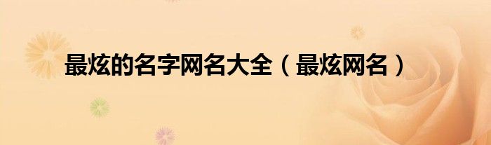 以上就是【最炫的名字网名大全,最炫网名】相关内容。