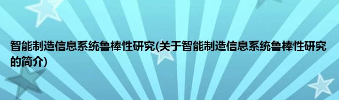 大家好,智能制造信息系统鲁棒性研究,关于智能制造信息系统鲁棒性研究的简介很多人还不知道,现在让我们一起来看看吧!