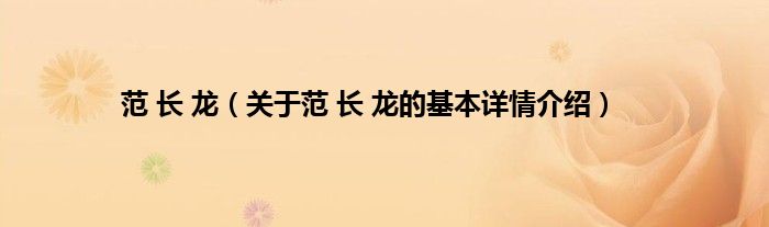 本文关于范 长 龙的基本详情介绍就讲解完毕,希望对大家有所帮助。