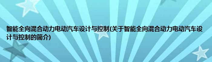 大家好,智能全向混合动力电动汽车设计与控制,关于智能全向混合动力电动汽车设计与控制的简介很多人还不知道,现在让我们一起来看看吧!