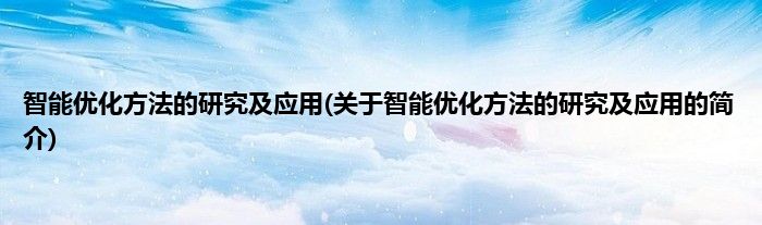 本文关于智能优化方法的研究及应用的简介就讲解完毕,希望对大家有所帮助。
