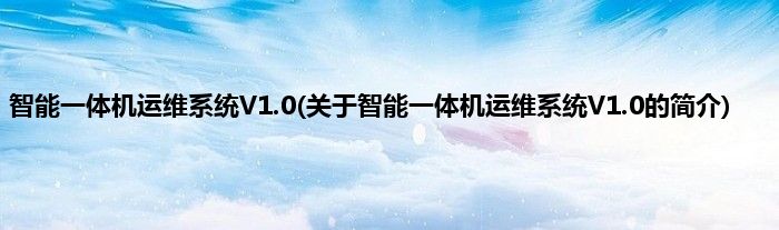 大家好,智能一体机运维系统V1.0,关于智能一体机运维系统V1.0的简介很多人还不知道,现在让我们一起来看看吧!