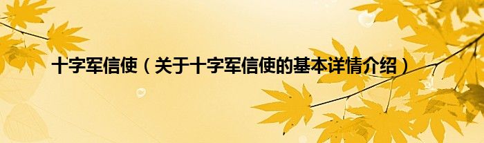 本文关于十字军信使的基本详情介绍就讲解完毕,希望对大家有所帮助。