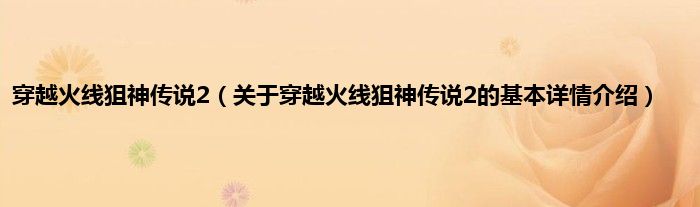 本文关于穿越火线狙神传说2的基本详情介绍就讲解完毕,希望对大家有所帮助。