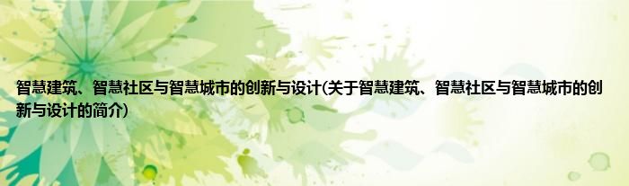 大家好,智慧建筑、智慧社区与智慧城市的创新与设计,关于智慧建筑、智慧社区与智慧城市的创新与设计的简介很多人还不知道,现在让我们一起来看看吧!