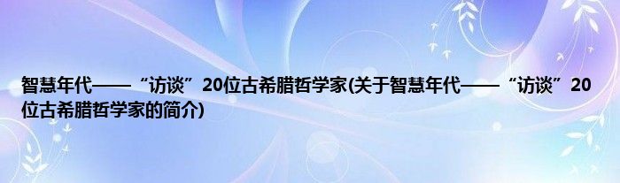 大家好,智慧年代——“访谈”20位古希腊哲学家,关于智慧年代——“访谈”20位古希腊哲学家的简介很多人还不知道,现在让我们一起来看看吧!