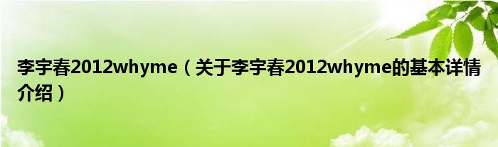 李宇春2012whyme(关于李宇春2012whyme的基本详情介绍)