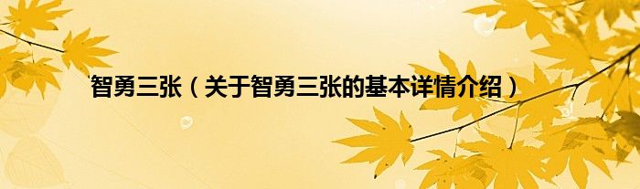 大家好我是小蝌蚪,智勇三张,关于智勇三张的基本详情介绍很多人还不知道,那么现在让我们一起来看看吧!