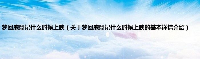本文关于梦回鹿鼎记什么时候上映的基本详情介绍就讲解完毕,希望对大家有所帮助。