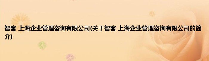 本文关于智客 上海企业管理咨询有限公司的简介就讲解完毕,希望对大家有所帮助。