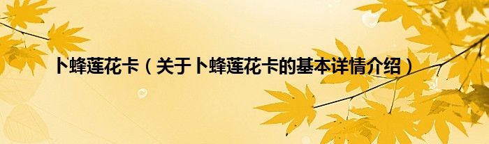 大家好我是小蝌蚪,卜蜂莲花卡,关于卜蜂莲花卡的基本详情介绍很多人还不知道,那么现在让我们一起来看看吧!