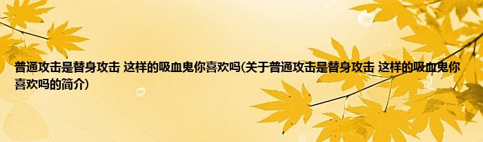 本文关于普通攻击是替身攻击,这样的吸血鬼你喜欢吗的简介就讲解完毕,希望对大家有所帮助。