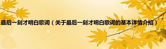 本文关于最后一刻才明白歌词的基本详情介绍就讲解完毕,希望对大家有所帮助。