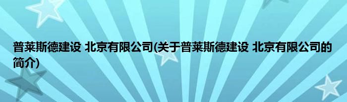 普莱斯德建设 北京有限公司(关于普莱斯德建设 北京有限公司的简介)