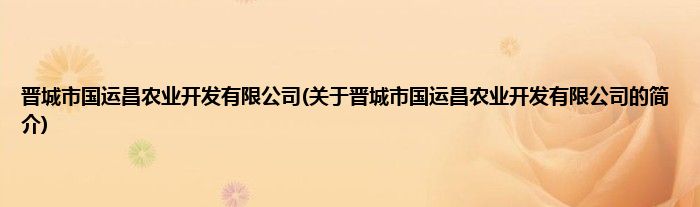 晋城市国运昌农业开发有限公司(关于晋城市国运昌农业开发有限公司的简介)