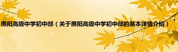 本文关于惠阳高级中学初中部的基本详情介绍就讲解完毕,希望对大家有所帮助。