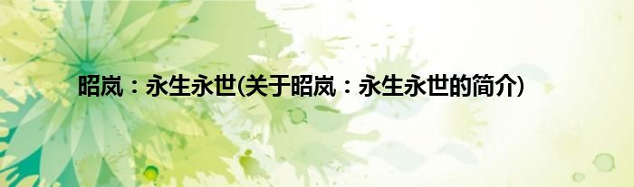 大家好,昭岚:永生永世,关于昭岚:永生永世的简介很多人还不知道,现在让我们一起来看看吧!