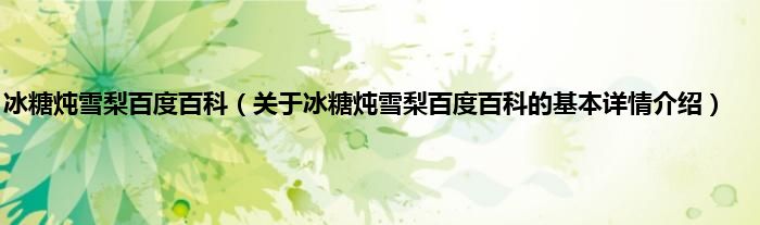 本文关于冰糖炖雪梨百度百科的基本详情介绍就讲解完毕,希望对大家有所帮助。