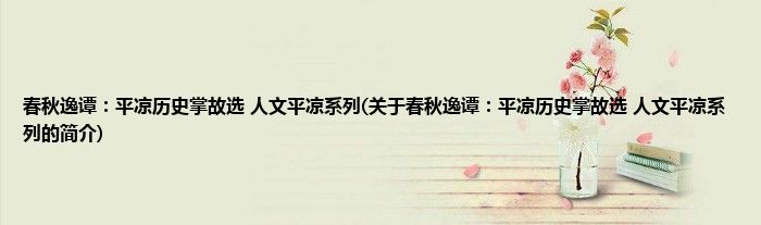 本文关于春秋逸谭:平凉历史掌故选 人文平凉系列的简介就讲解完毕,希望对大家有所帮助。