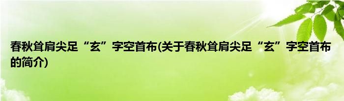 本文关于春秋耸肩尖足“玄”字空首布的简介就讲解完毕,希望对大家有所帮助。