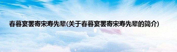 本文关于春暮宴罢寄宋寿先辈的简介就讲解完毕,希望对大家有所帮助。