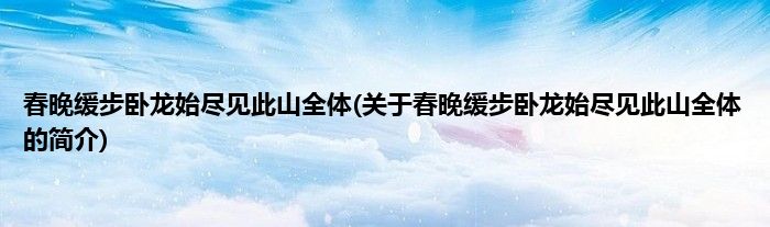 本文关于春晚缓步卧龙始尽见此山全体的简介就讲解完毕,希望对大家有所帮助。