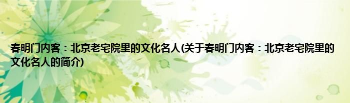 本文关于春明门内客:北京老宅院里的文化名人的简介就讲解完毕,希望对大家有所帮助。
