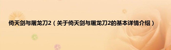 本文关于倚天剑与屠龙刀2的基本详情介绍就讲解完毕,希望对大家有所帮助。