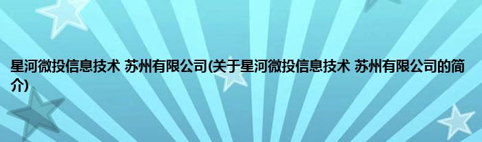 大家好,星河微投信息技术 苏州有限公司,关于星河微投信息技术 苏州有限公司的简介很多人还不知道,现在让我们一起来看看吧!