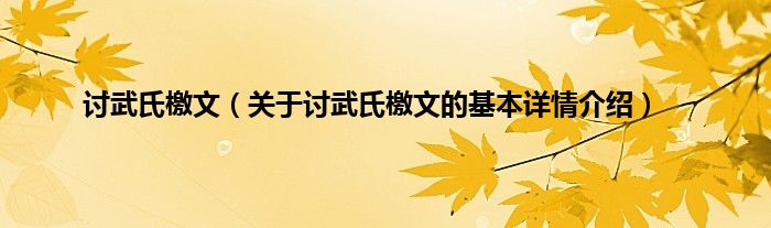 本文关于讨武氏檄文的基本详情介绍就讲解完毕,希望对大家有所帮助。