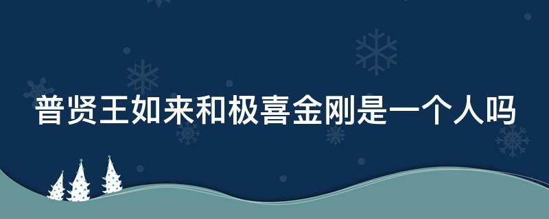 普贤王如来和极喜金刚不是一个人。普贤王如来,又称法身普贤,藏密的本初佛、原始佛、最高佛。盛行于西藏雍仲本教与宁玛派。藏语名本古衮徳桑波,是西藏本土宗教雍仲本教所尊奉的本初佛,汉译为法身普贤佛。本古是法身,衮徳是指三世普及,常谓之普;桑波是妙善,谓之贤。也就是说这尊佛具有为磊众所望的贤德,又名普贤王佛。极喜金刚是如来显现为大圆满人间初祖的应化身,是把大圆满最初弘扬于人间的祖师。