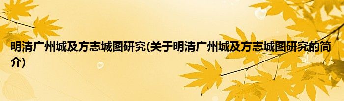 本文关于明清广州城及方志城图研究的简介就讲解完毕,希望对大家有所帮助。