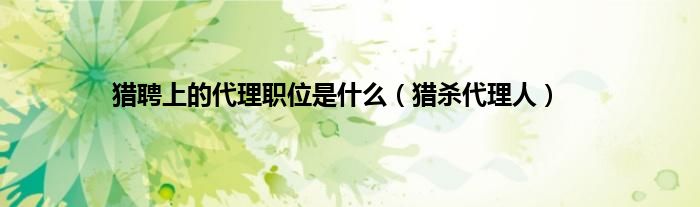 大家好,小问来为大家解答以上问题。猎聘上的代理职位是什么,猎杀代理人这个很多人还不知道,现在让我们一起来看看吧!