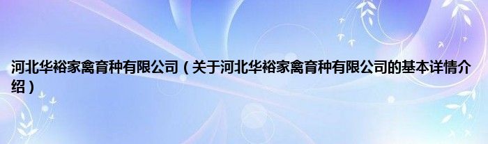 本文关于河北华裕家禽育种有限公司的基本详情介绍就讲解完毕,希望对大家有所帮助。