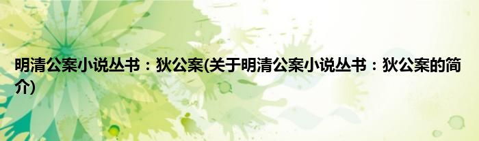 本文关于明清公案小说丛书:狄公案的简介就讲解完毕,希望对大家有所帮助。