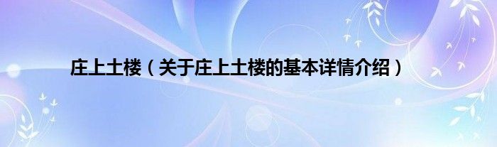 本文关于庄上土楼的基本详情介绍就讲解完毕,希望对大家有所帮助。