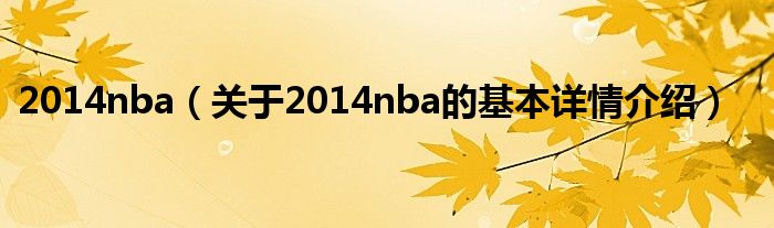 本文关于2014nba的基本详情介绍就讲解完毕,希望对大家有所帮助。