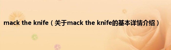 本文关于mack the knife的基本详情介绍就讲解完毕,希望对大家有所帮助。