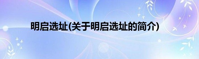 本文关于明启选址的简介就讲解完毕,希望对大家有所帮助。
