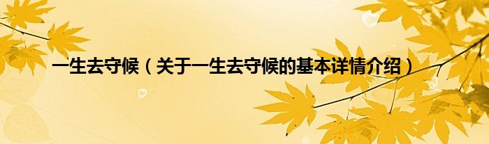 本文关于一生去守候的基本详情介绍就讲解完毕,希望对大家有所帮助。