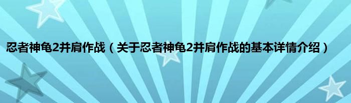 本文关于忍者神龟2并肩作战的基本详情介绍就讲解完毕,希望对大家有所帮助。