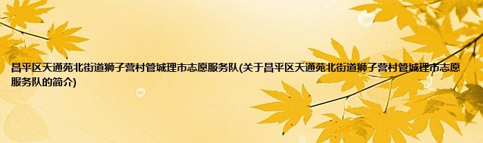 本文关于昌平区天通苑北街道狮子营村管城理市志愿服务队的简介就讲解完毕,希望对大家有所帮助。