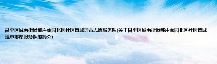 本文关于昌平区城南街道郝庄家园北区社区管城理市志愿服务队的简介就讲解完毕,希望对大家有所帮助。