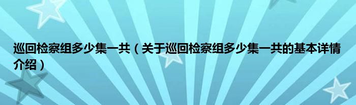 本文关于巡回检察组多少集一共的基本详情介绍就讲解完毕,希望对大家有所帮助。
