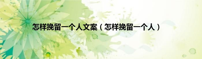 以上就是【怎样挽留一个人文案,怎样挽留一个人】相关内容。
