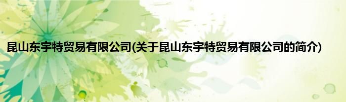 本文关于昆山东宇特贸易有限公司的简介就讲解完毕,希望对大家有所帮助。