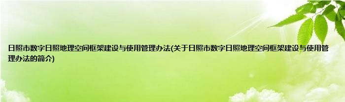 日照市数字日照地理空间框架建设与使用管理办法(关于日照市数字日照地理空间框架建设与使用管理办法的简介)
