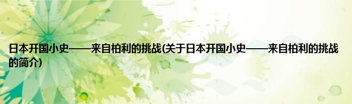 本文关于日本开国小史——来自柏利的挑战的简介就讲解完毕,希望对大家有所帮助。
