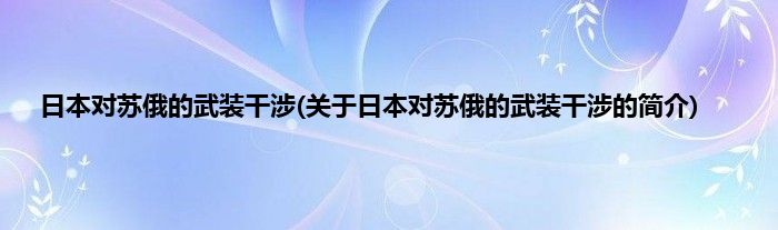 本文关于日本对苏俄的武装干涉的简介就讲解完毕,希望对大家有所帮助。