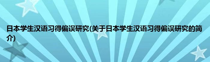 本文关于日本学生汉语习得偏误研究的简介就讲解完毕,希望对大家有所帮助。